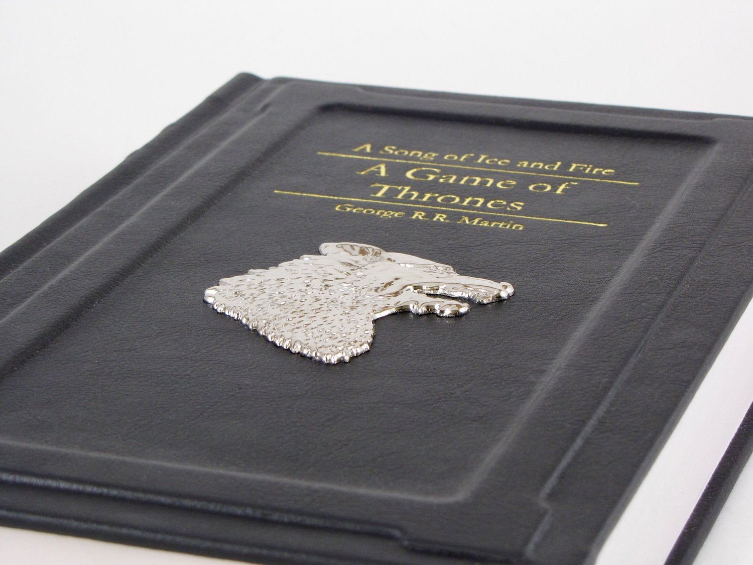 The beautifully numbered and hubbed spine features a decorative sword inspired by the the world of A Song of Ice and Fire.