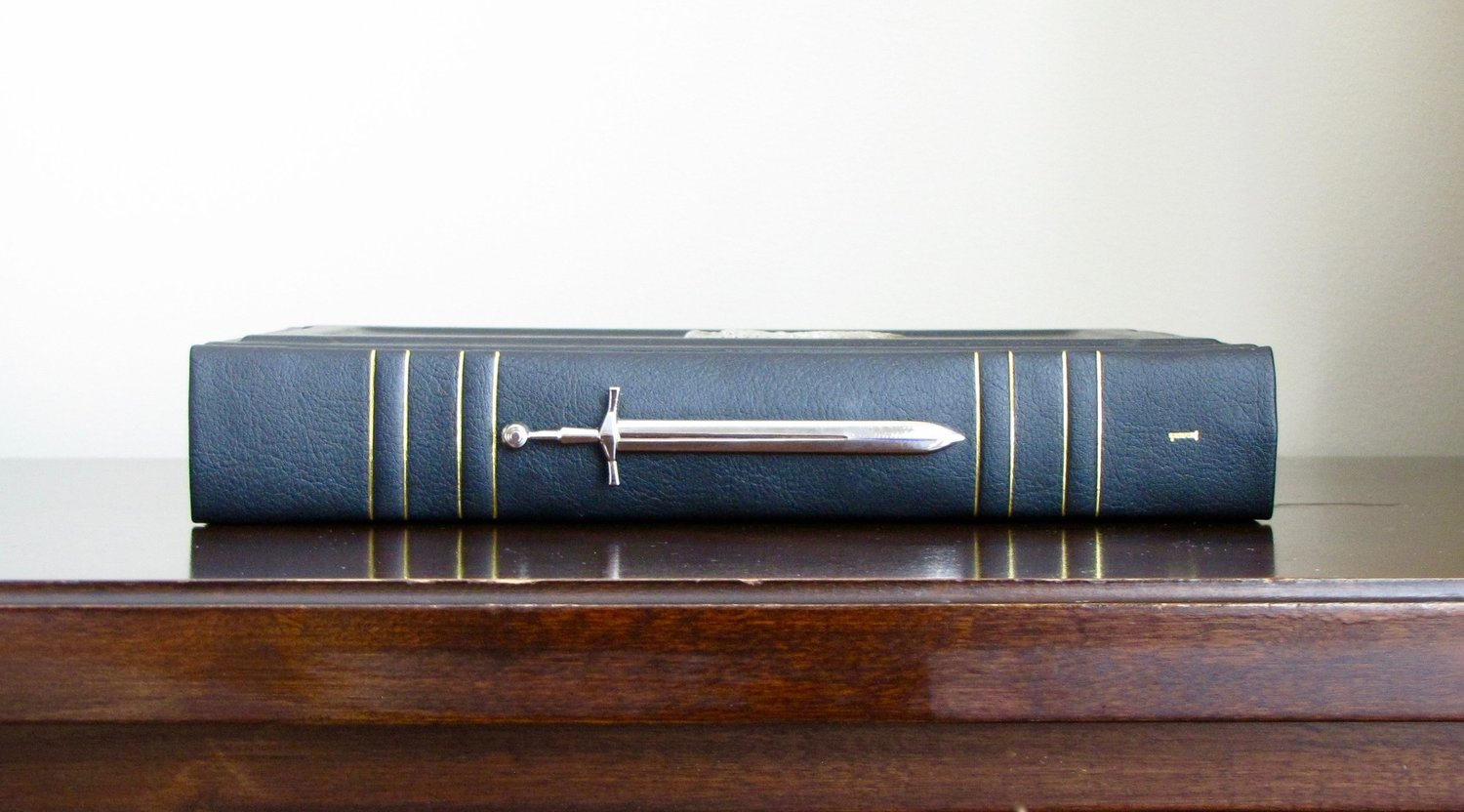 This is also the point when the special magnet it glued into the spine to secure the magnetic sword bookmark. It is less than 2mm (approx. 60 thousandths of an inch) thick.